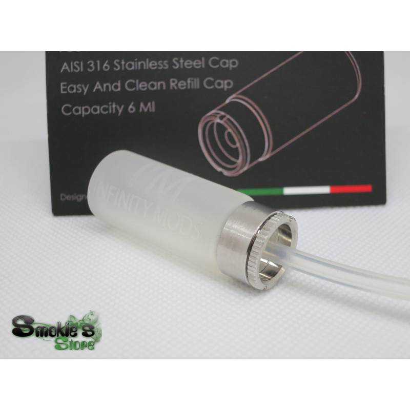 La bottiglietta di silicone Cappy V4 è fatta in Italia in collaborazione fra Infinity Mods (I’M) e SunBox ed è estremamente resistente, durevole, facile da premere e drena velocemente il liquido in eccesso. Inoltre ha un tappo a prova di perdite! Il tappo di acciaio inossidabile offre la maggiore durabilità anche con ricarica ripetuta.